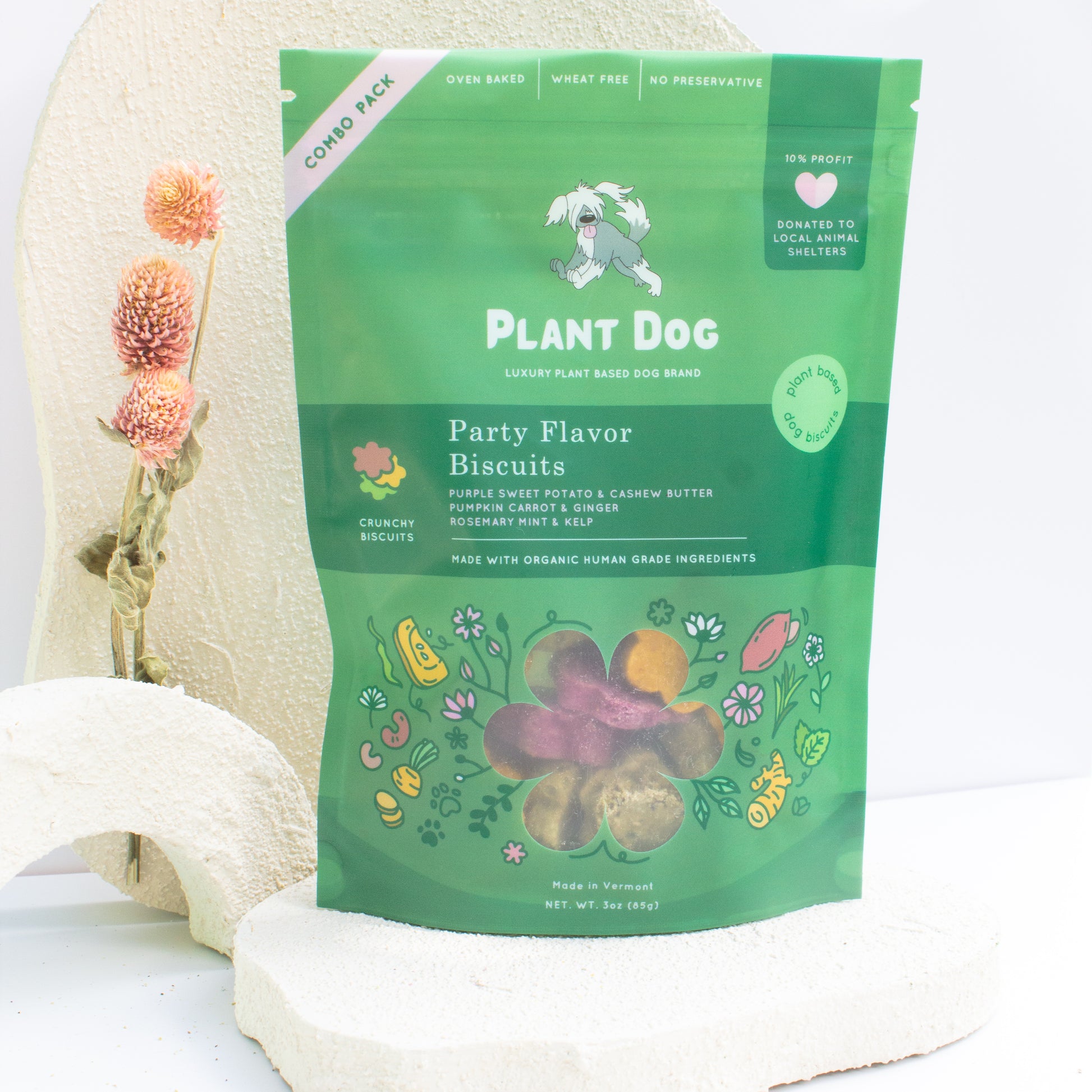 Please note that we’ve recently updated our biscuit shape and removed the “Plant Dog” stamp from the front, so the cookies may look slightly different from the photo. Enjoy the tasty variety!