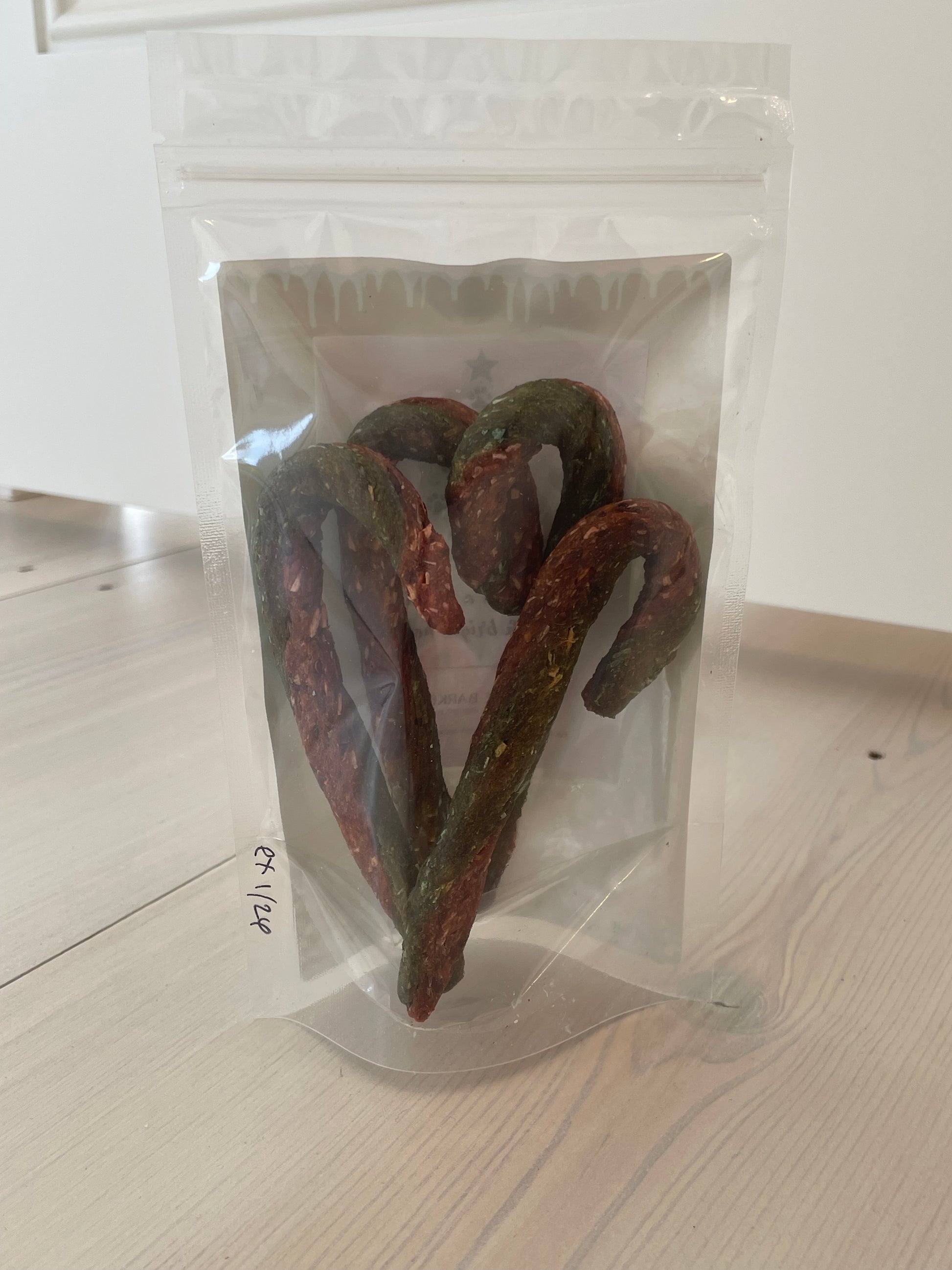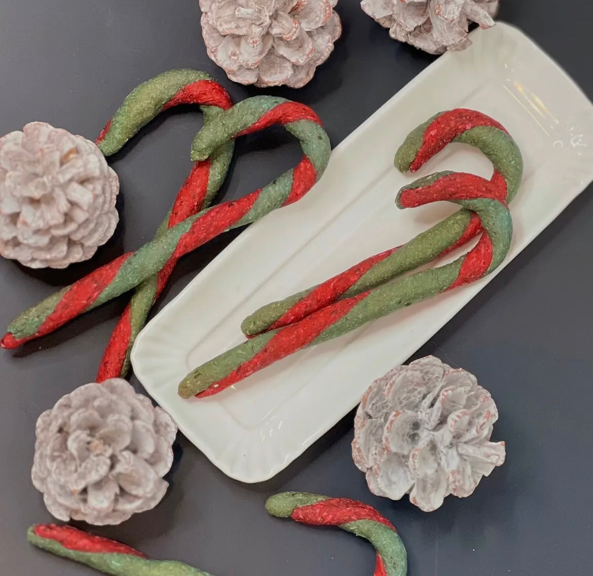 Pupcane is thoughtfully crafted holiday treat for your dog, packed with nutrient-rich superfoods like spirulina, beets, and flaxseed. These ingredients support your dog's overall health by promoting a strong immune system, healthy digestion, and a shiny coat. Perfect for seasonal celebrations, Pupcane combines festive flavor with wholesome benefits that your pet will love.