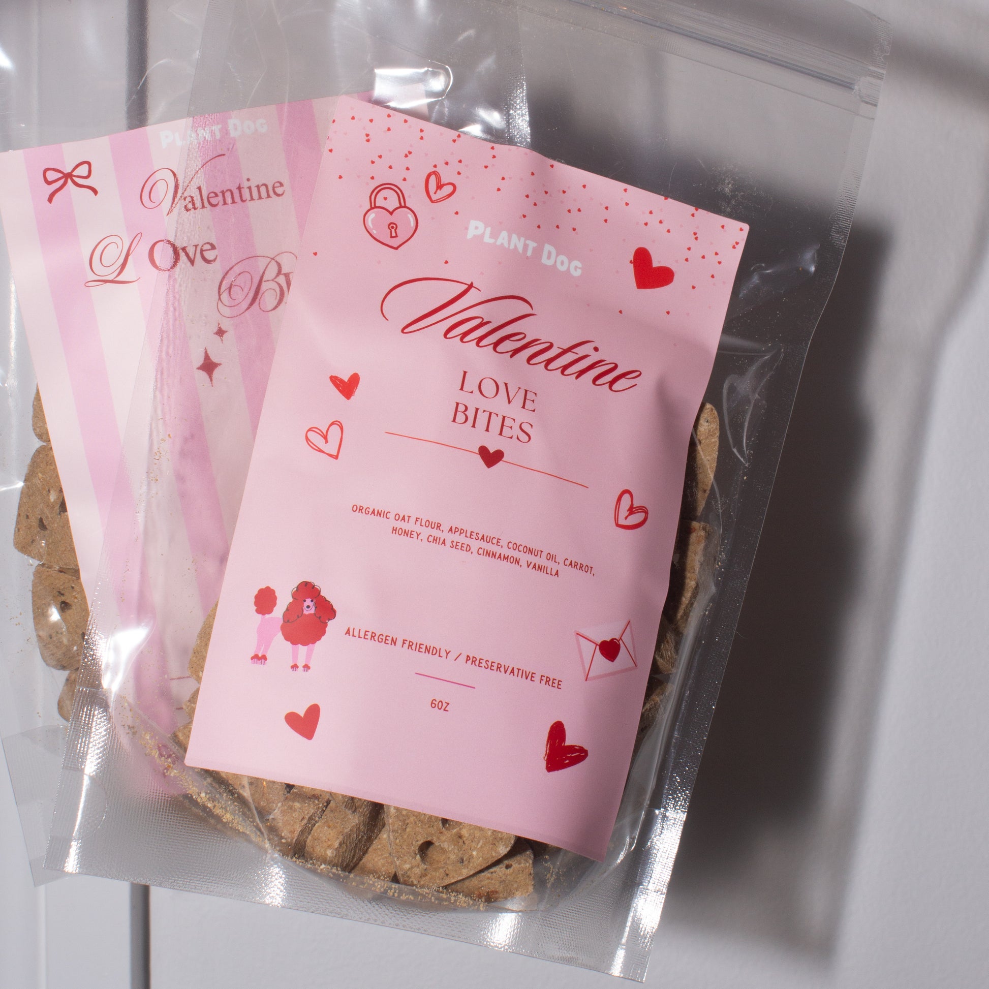 Spoil your furry friend this Valentine's Day with our Valentine Dog Bites! Made with only the healthiest organic ingredients, your pup will love these tasty treats. Show them some extra love with a guilt-free treat they'll enjoy.